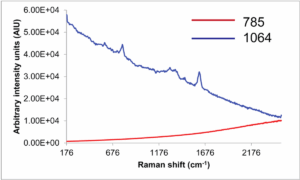 A 1064 nm laser is ideal for analyzing darker illicit drug samples, botanicals, and highly colored compounds, such as paints and inks, as these tend to have strong fluorescence when using 532 nm or 785 nm excitation.