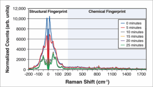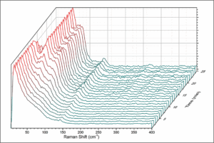 Measurement and control of reactions, crystallization rates and/or amorphous states is increasingly important across the chemical, pharmaceutical and electronics industries. Clear, unambiguous determination of material structure (such as polymorphs), degree of crystallinity, and phase is essential to chemical process development, formulation, stability testing and material characterization. As materials change from disordered to highly ordered (e.g. amorphous to crystalline), the low frequency bands shift and become sharper.