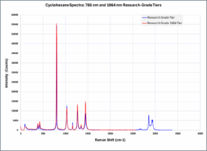 The second decision in designing your DIY Raman system is choosing the spectrometer performance tier. In the case of our 1064 nm DIY Raman system, the benefits of the highest level of florescence rejection also comes with lower strength Raman signal when compared to an equivalent 532 nm or 785 nm Raman system, so we offer our highest performance Research-Grade Tier.